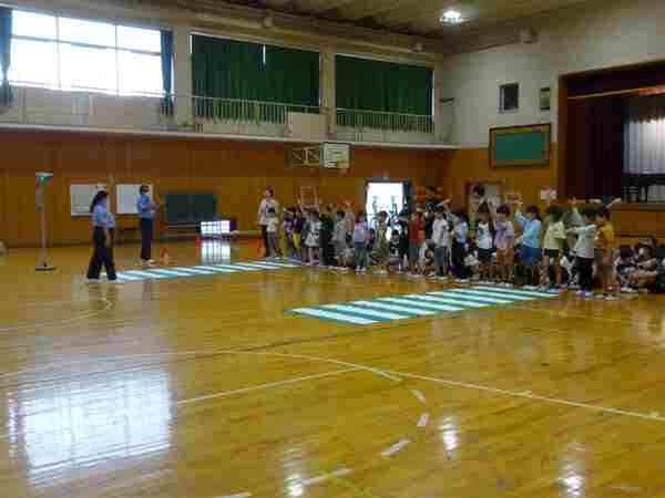 10月1日、今日は1~3年生の交通安全教室が行われました。1・2年生は安全な横断歩道の渡り方、3年生は安全な自転車の乗り方等のお話をいただきました。