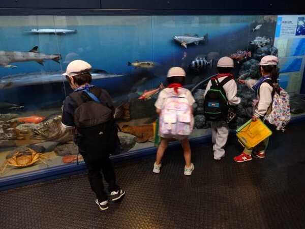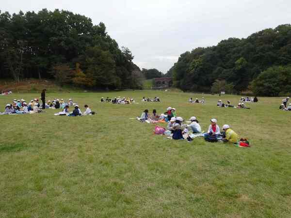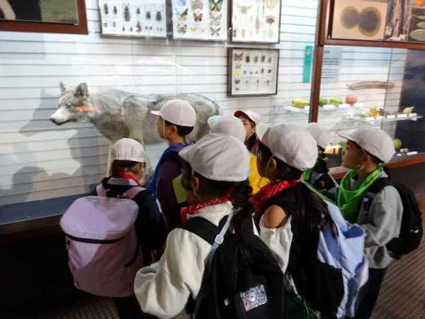 10月31日、今日は2年生の校外学習の日でした。行先は茨城県自然博物館です。雨が昼頃から降るかもしれない予報でしたが、お弁当も外で食べることが来ました。自然博物館内では、グループごとに分かれての見学でしたが、動物のはく製の展示物に驚いたり、水槽の魚をじっくり見たりするなど、協力して活動することができました。