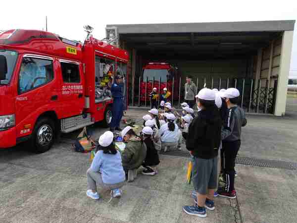 11月5日、2校時に3年生が大宮西消防署西遊馬出張所に消防署見学に行きました。私たちの生活を守るために、どんなことをしているのか、消防車を見たり、お話を聞いたりすることができました。