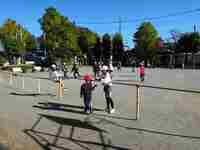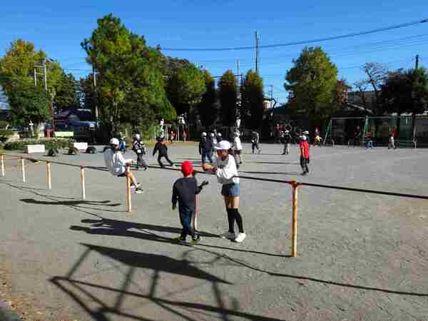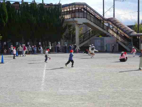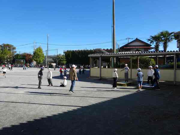 11月10日、今日は気持ちよく晴れ、休み時間には外で元気に遊ぶ子たちがいました。午後はやや風が強く吹くときもありましたが、子どもたちは気に掛けることもなく、おにごっこ、縄跳び、ドッチボール、バスケットボールなどをしていました。