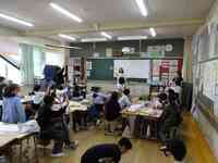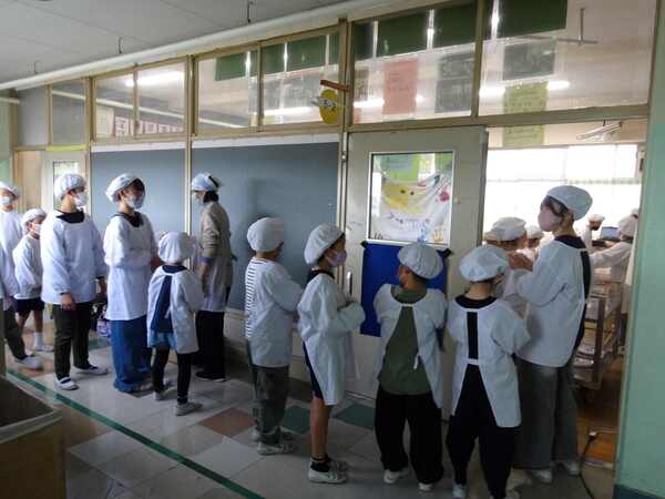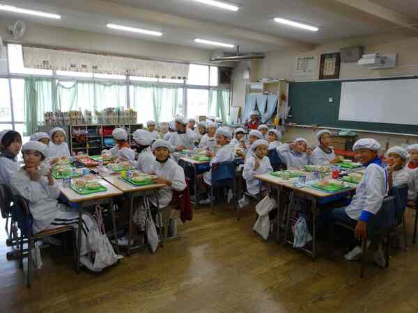 低学年は6年生にお迎えに来てもらい、4・5年生で配膳、「いただきます」をして食べ始めました。なかよしグループ(縦割)での給食はいつもと違い、みんな何を話したらいいのか迷い、最初はとても静かでした。だんだん雰囲気にも慣れ、給食後のなかよしタイムでは、お話をしたり、レクをしたりして賑やかになりました。