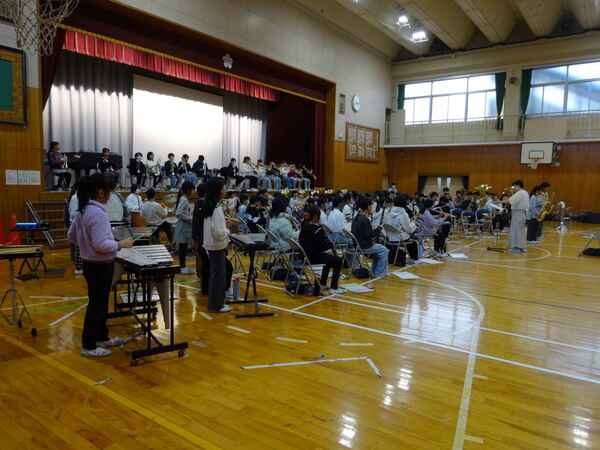 12月3日の放課後、体育館で吹奏楽部が練習をしていました。13日(土)に管楽器連盟演奏発表会があり、そのために、体育館での全体練習等をやっています。今日は曇り空で、体育館も少し寒かったです。その中で、吹奏楽部員のみなさんが素敵な音を響かせていました。部員全員の想いを演奏に出して欲しいと思っています。
