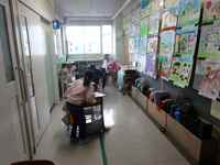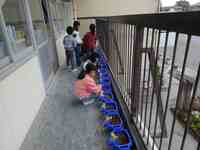 登校後、チューリップの球根に水をやったり、ワックス掛けをしたので、廊下にある机を教室に入れたりする姿が見られました。