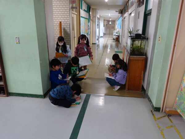 2月12日、1年生が国語の学習で、業間休みや昼休みに先生方などにインタビューをしていました。「すきな色はなんですか」「すきなスポーツはなんですか」など、質問したいことを決め、インタビューし、その後メモにまとめていました。どの子も自分の質問したいことをはっきりとわかりやすく言うことができました。