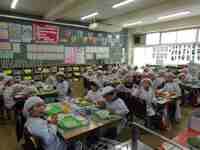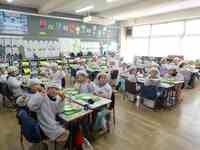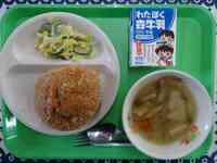 2月27日。2月はあっという間ですね。2月の最終登校日です。今日の献立は、6年1組が考えた馬宮っ子が栄養バランスを考えた元気になる献立です。「カレーパン、牛乳、やさいスープ、コールスロー」です。年に1回の「カレーパン」の日です。初めての「カレーパン」は1年生にとっては厚みに驚きです。「コンビニのカレーパンと同じくらい美味しい」「お替りしたいです」など、いつも以上に楽しい給食時間でした。