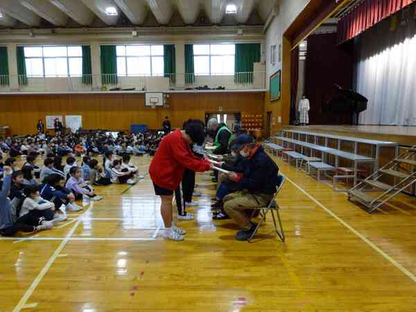 3月3日、朝の時間に「感謝の会」を行いました。一年間お世話になったスクールサポートネットワークや学校安全ネットワークの方々に御来校いただき、お手紙を渡したり、「ありがとうの花」を歌ったりして感謝の気持ちを伝えました。