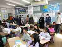 授業の様子を見に行くと、元気に挨拶をしてくれる子がいたり、また、給食では、民生委員の方に質問をしたりする子がいました。