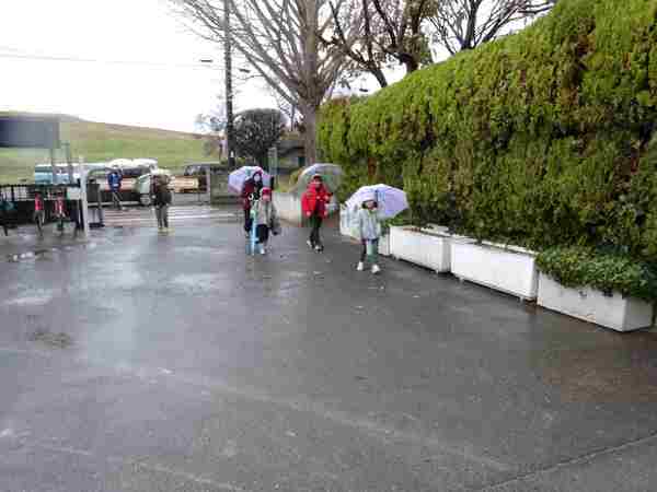 3月10日、今日から新しい通学班で登校します。しかし、あいにくの雨。子どもたちが学校に着く頃には、雪?みぞれ?あられ?でしょうか、降ってきていました。3月に入ってからの冷たい雨には、子どもたちも「寒かった!」「ぬれちゃった」と口々に話してくれました。