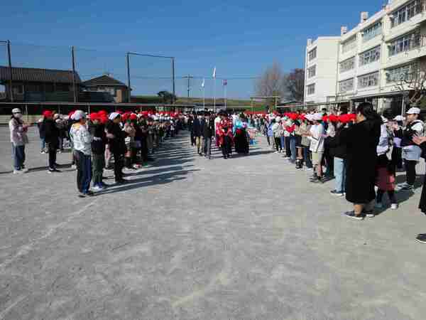 3月24日、今日は卒業する6年生と在校生とのお別れ式を行いました。いつもとは違う、とてもかっこいい6年生の姿でした。在校生みんなでこの一年間お世話になったお礼を伝えることができました。